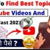 How To Find Best Topics For Youtube Videos And Grow Fast 2022 ?? How